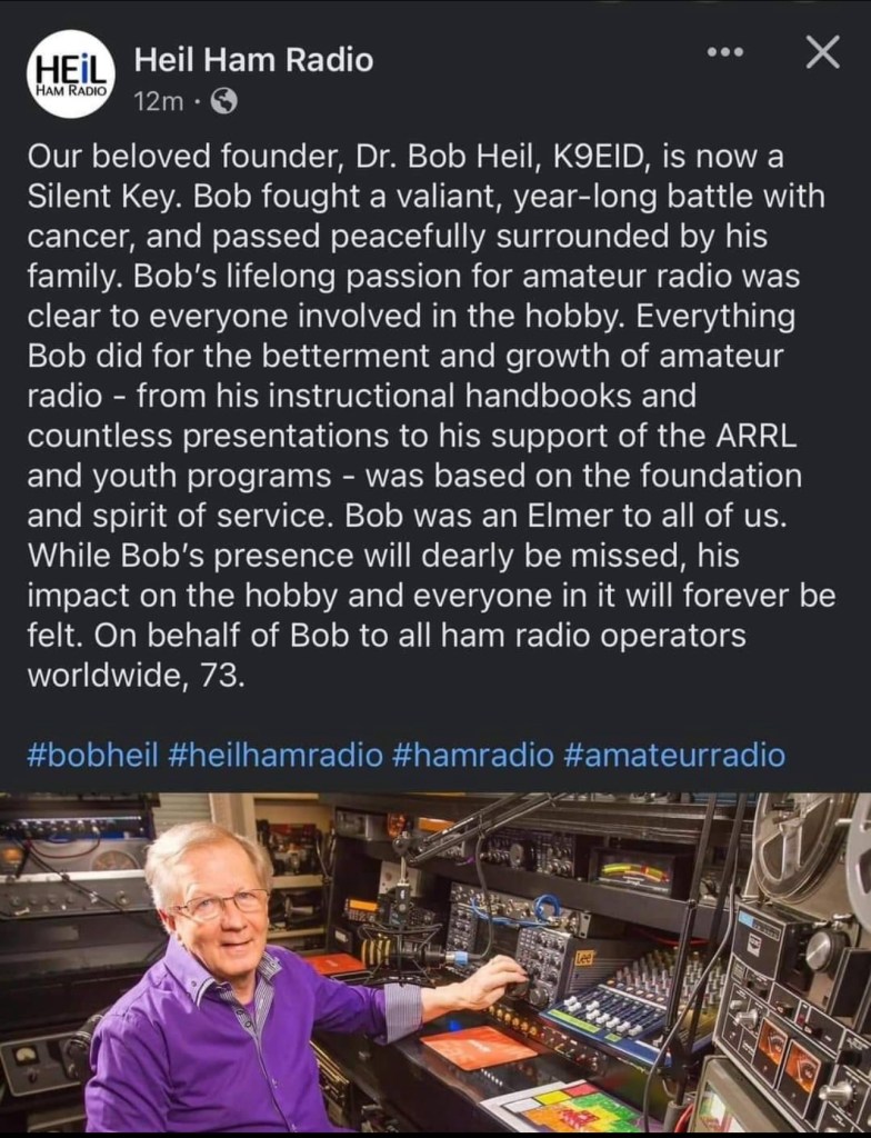 Bob Heil K9EID SK Sad news… Share this: Click to share on X (Opens in new window) X Click to share on Facebook (Opens in new window) Facebook Like Loading...